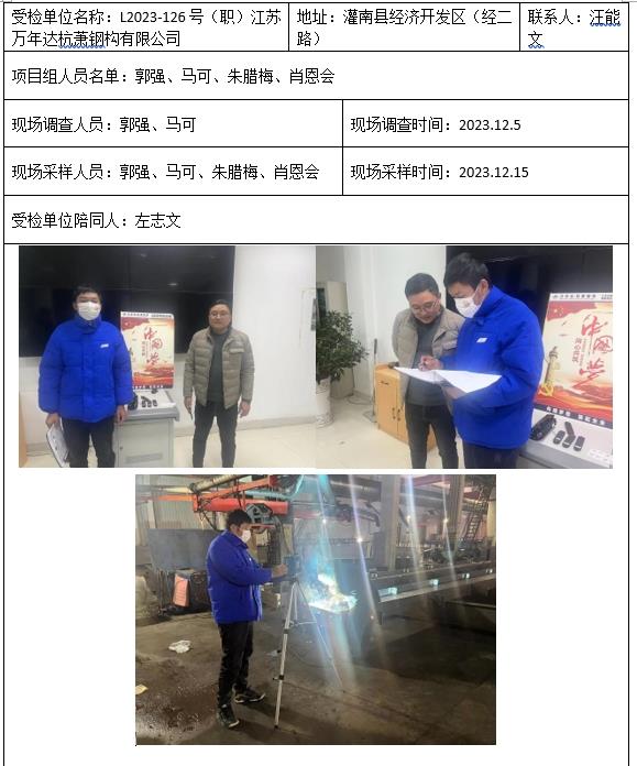 江苏万年达杭萧钢构有限公司 职业卫生检测项目公示