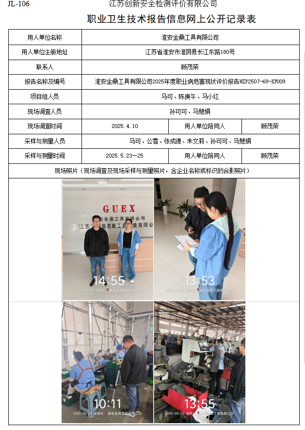 淮安金鼎工具有限公司2025年度职业病危害现状评价报告