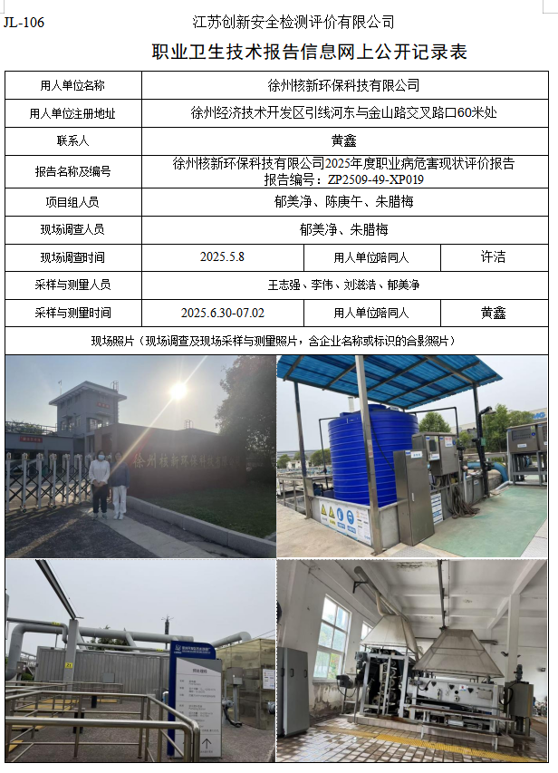 徐州核新环保科技有限公司2025年度职业病危害现状评价报告