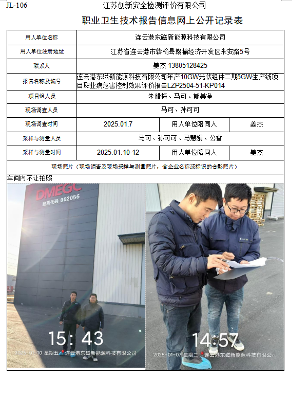 连云港东磁新能源科技有限公司年产10GW光伏组件二期5GW生产线项目职业病危害控制效果评价报告