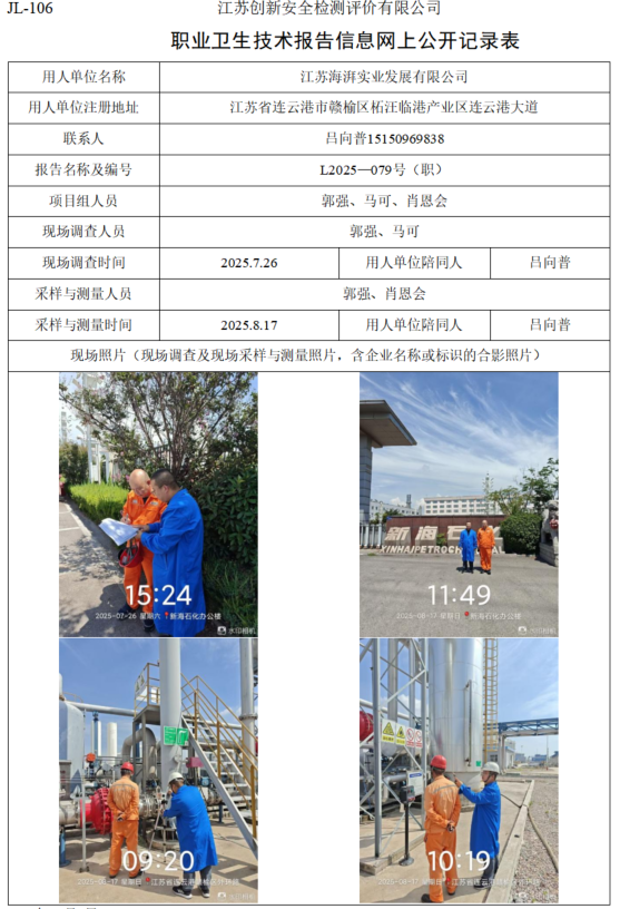 江苏海湃实业发展有限公司职业卫生检测项目公示