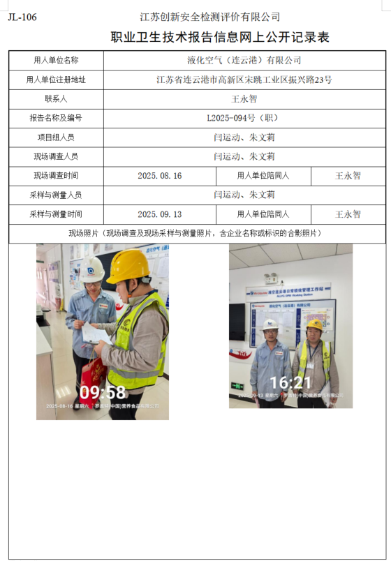 液化空气(连云港)有限公司职业卫生检测项目公示