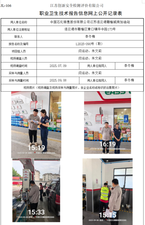 中国石化销售股份有限公司江苏连云港赣榆城南加油站职业卫生检测项目公示