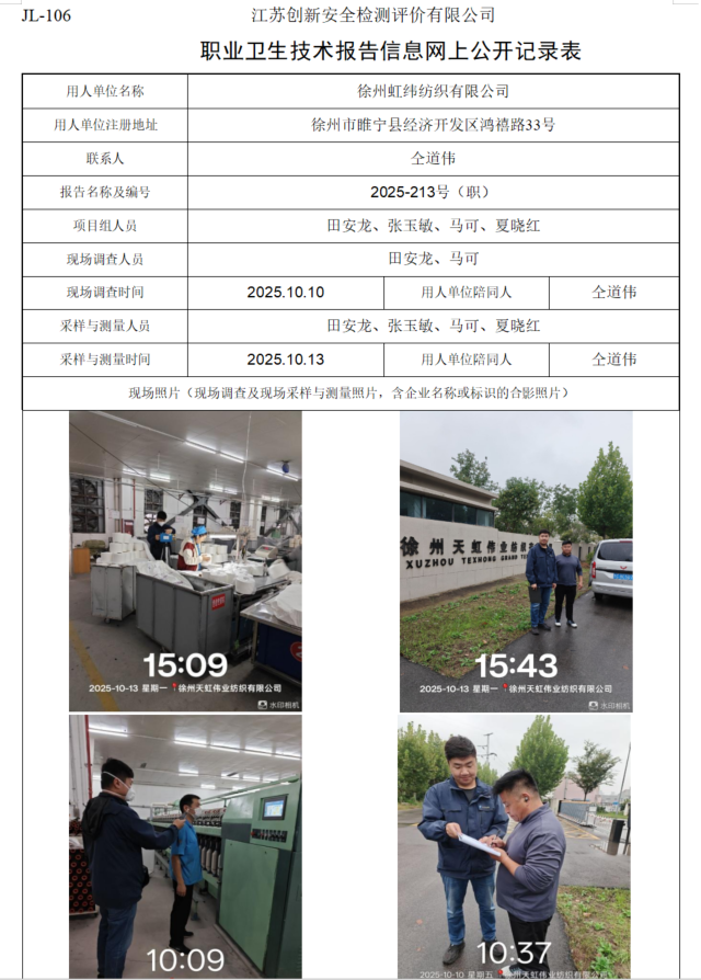 徐州虹纬纺织有限公司职业卫生检测项目公示