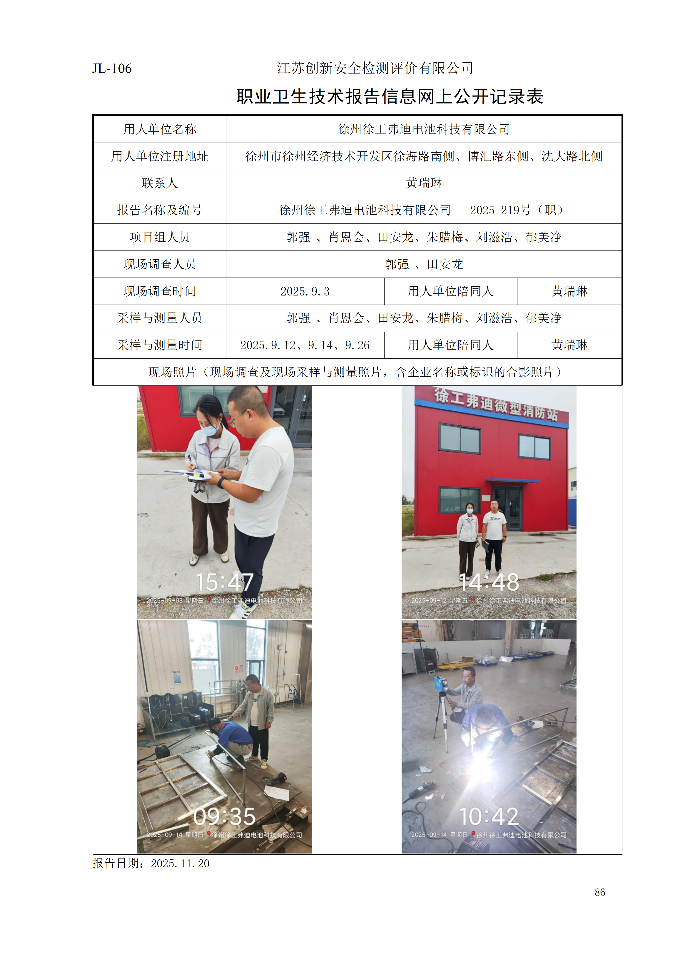 徐州徐工弗迪电池科技有限公司职业卫生检测项目公示