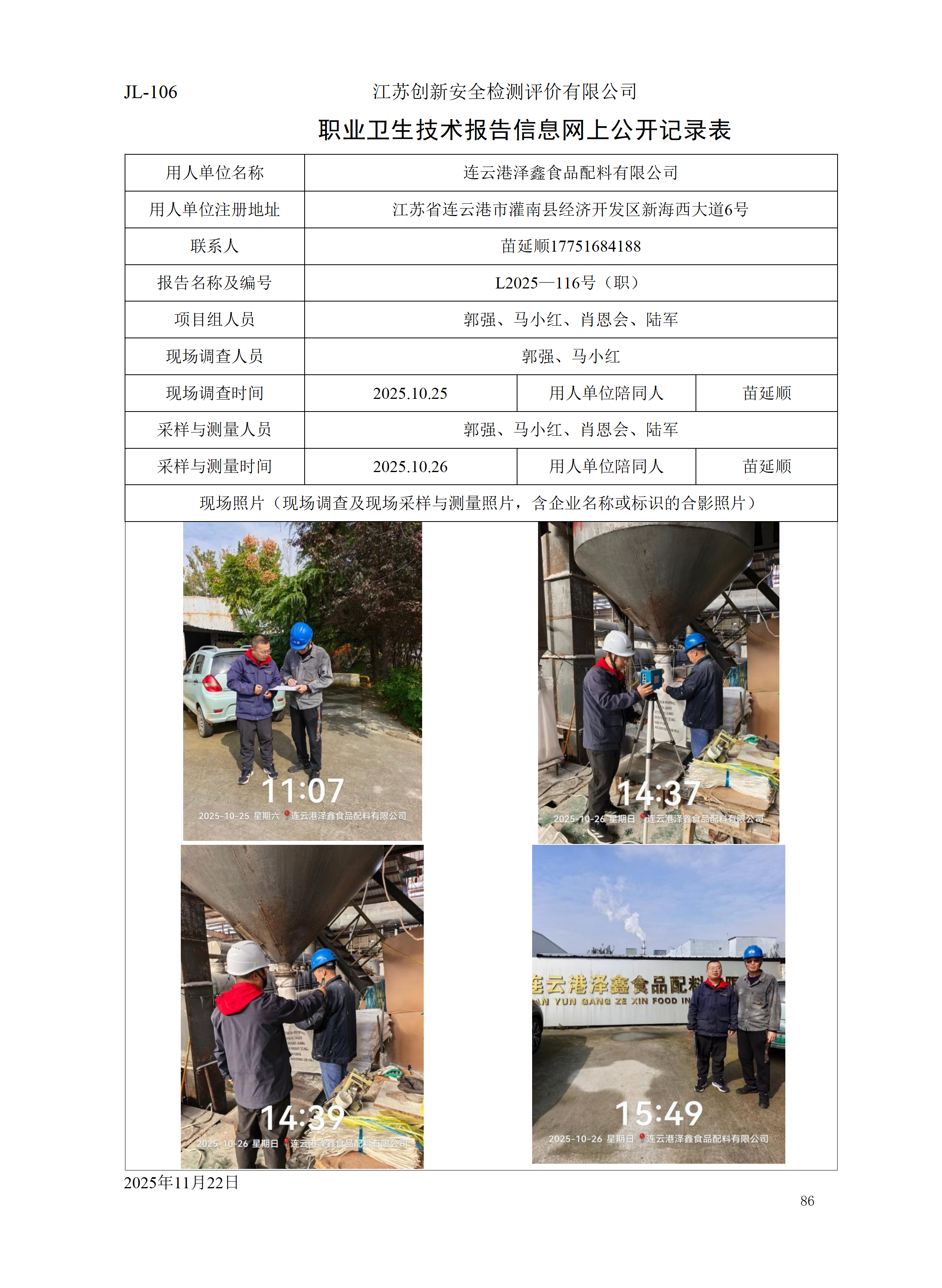 连云港泽鑫食品配料有限公司职业卫生检测项目公示