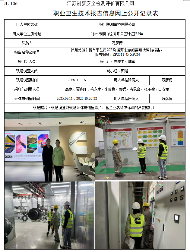 徐州美驰车桥有限公司2025年度职业病危害现状评价报告