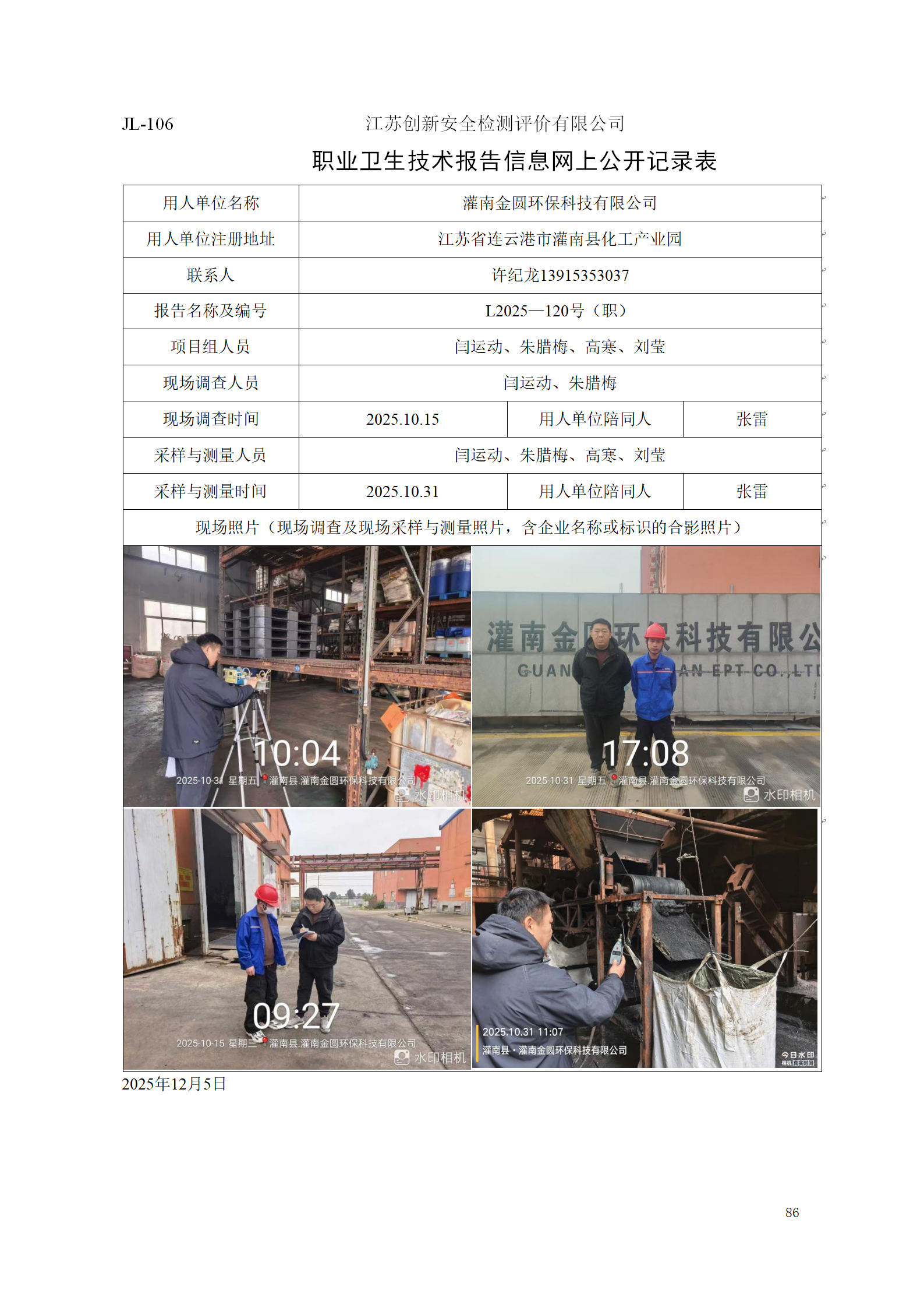 灌南金圆环保科技有限公司职业卫生定期检测项目公示