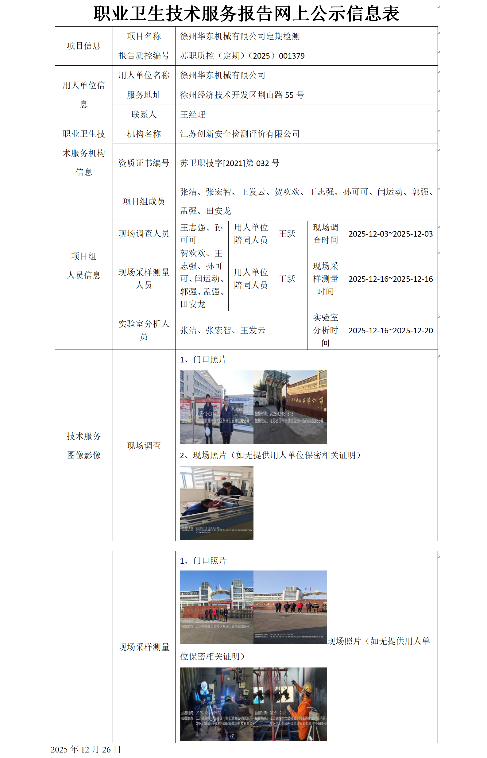 徐州华东机械有限公司定期检测项目公示