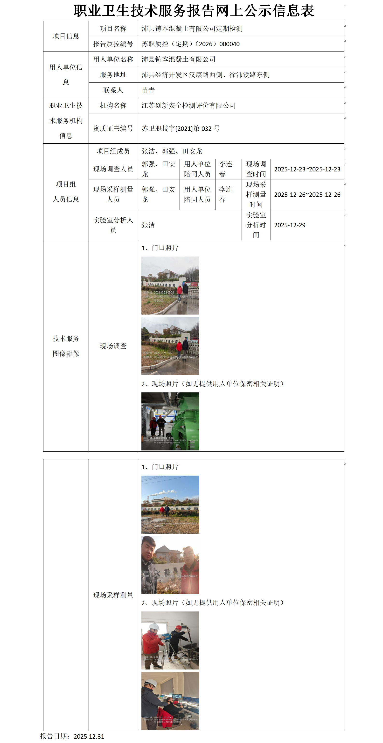 沛县铸本混凝土有限公司定期检测项目公示