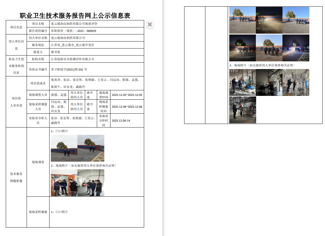 连云港润众制药有限公司临港厂区现状评价公示表