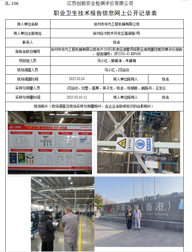 徐州市华为工程机械有限公司年产200万条液压油管项目职业病危害控制效果评价报告