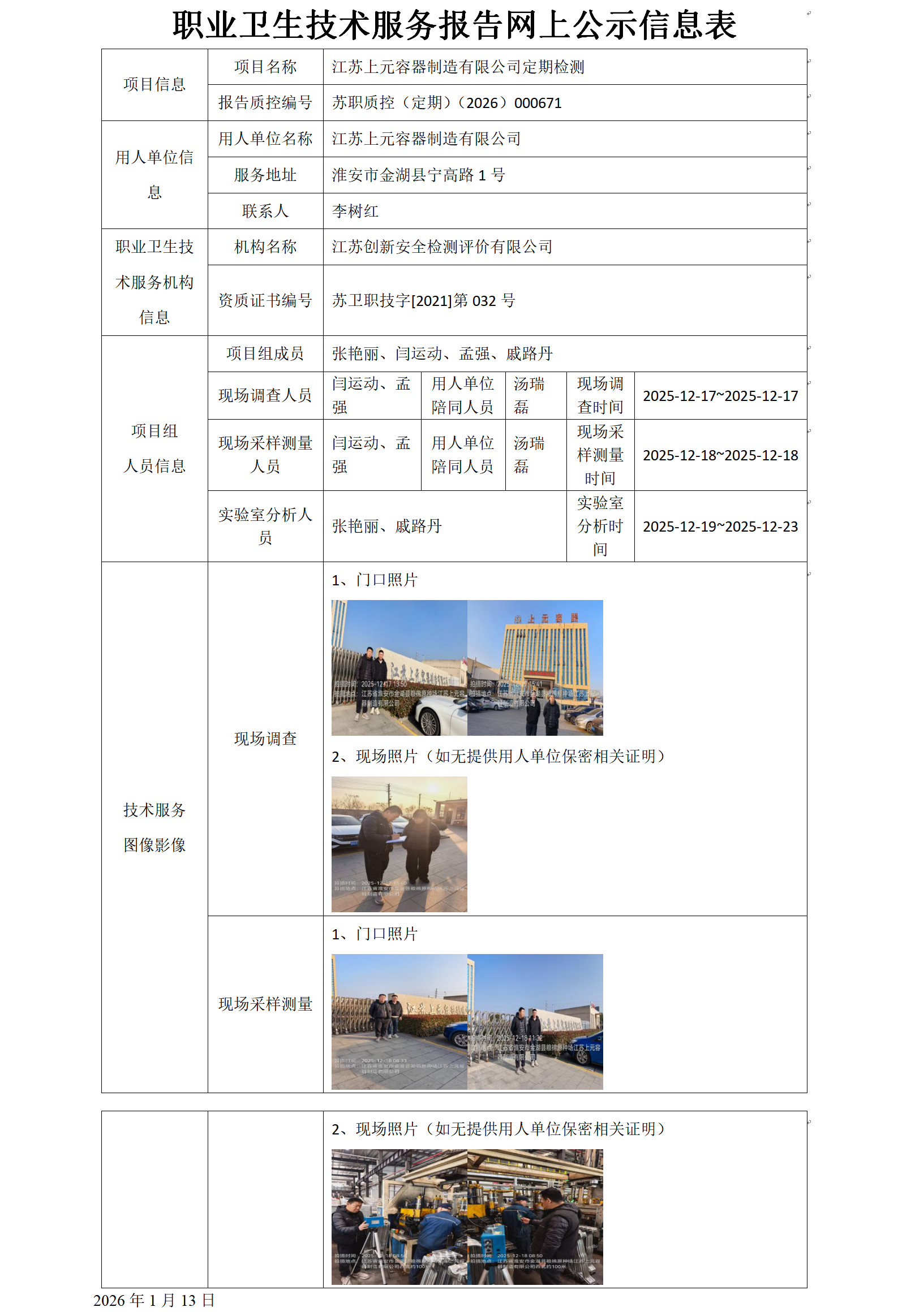 灌南县新澳港务有限公司职业卫生定期检测公示