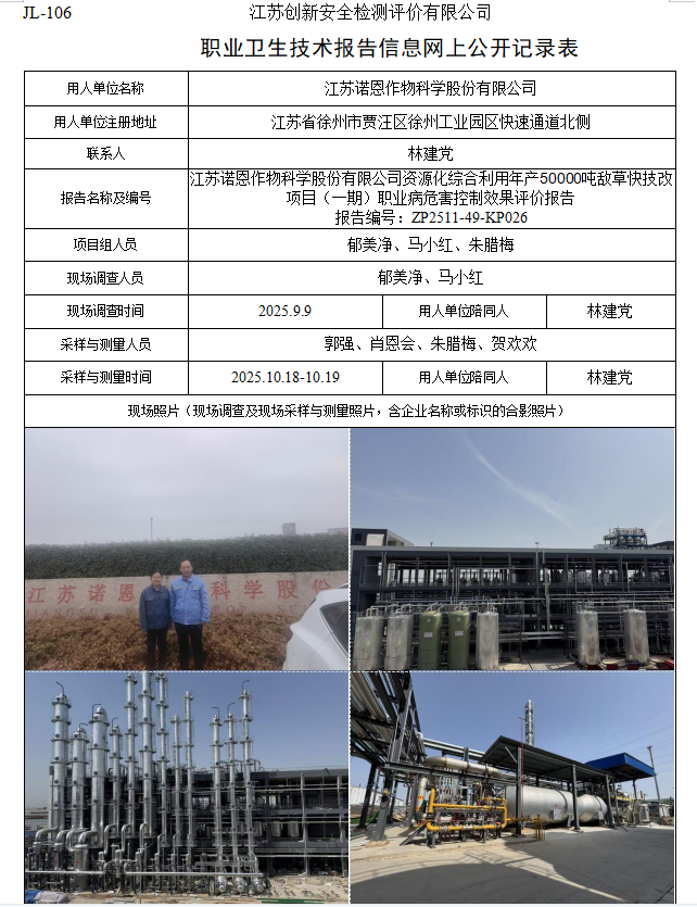 江苏诺恩作物科学股份有限公司资源化综合利用年产50000吨敌草快技改项目(一期)职业病危害控制效果评价报告