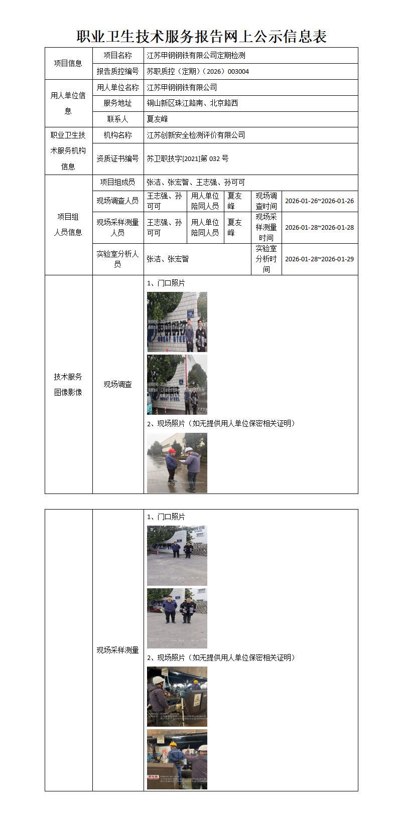 江苏甲钢钢铁有限公司定期检测