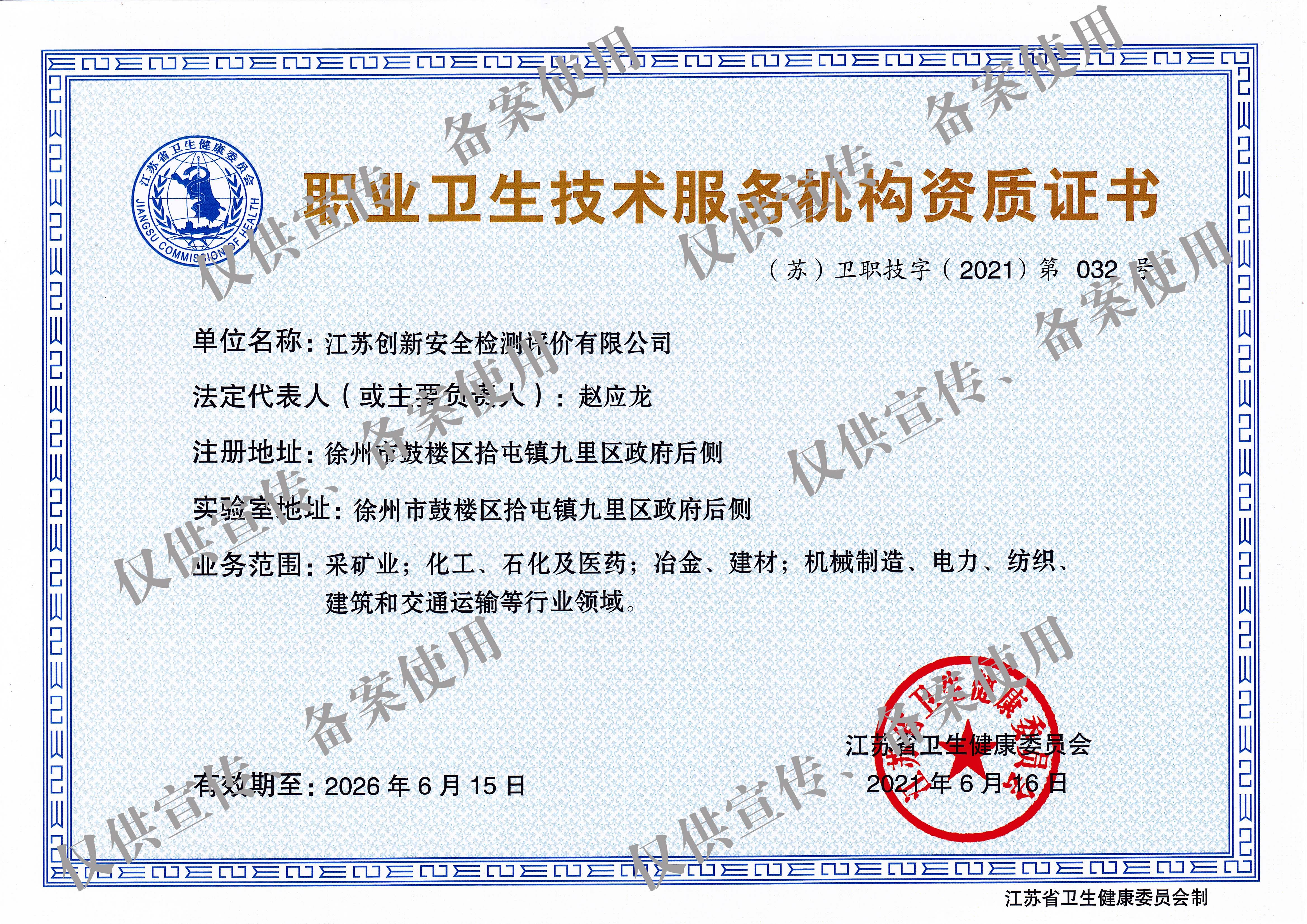 职业卫生技术服务机构资质证书