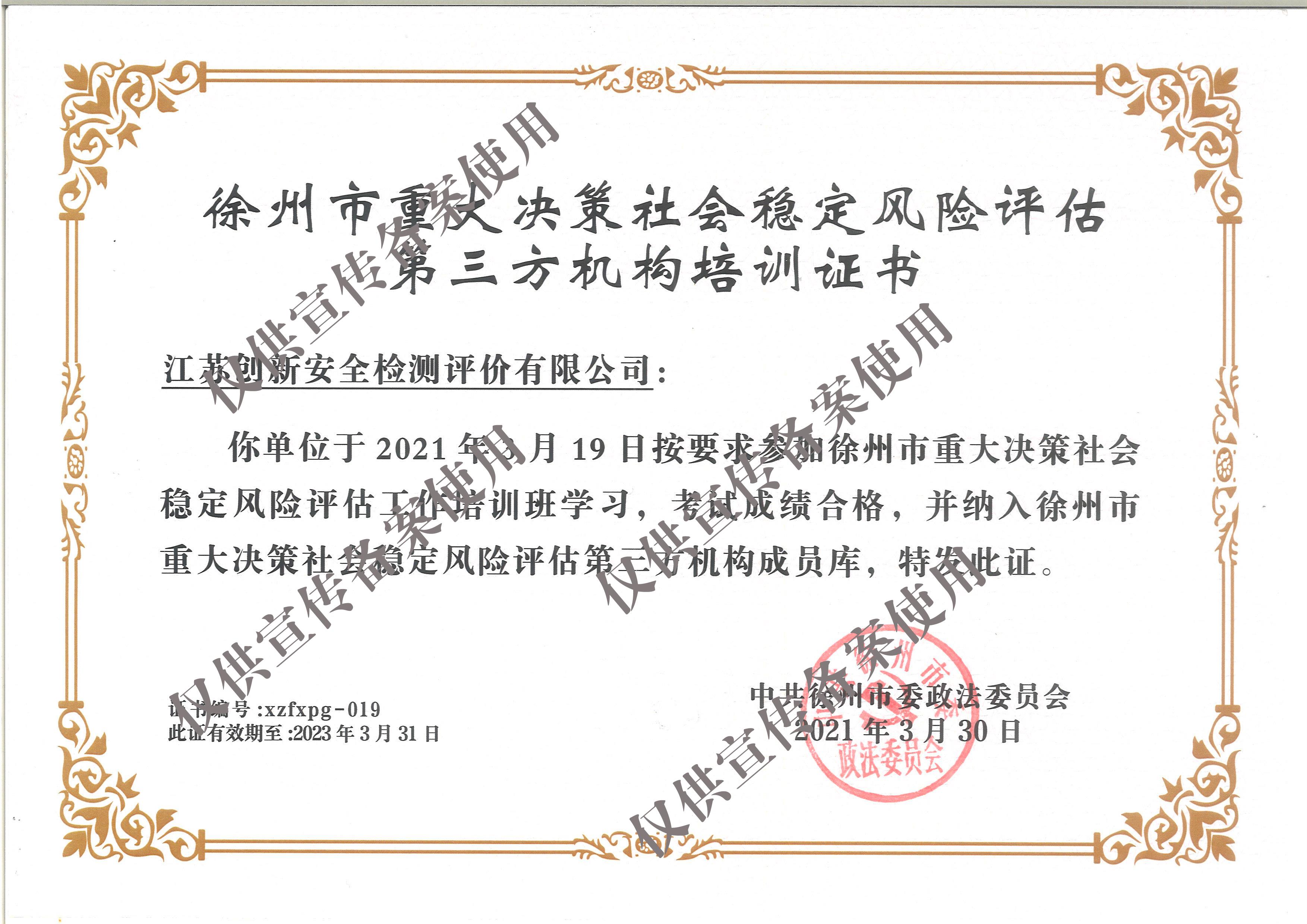 徐州市社会稳定风险评估工作"资格等级"证书