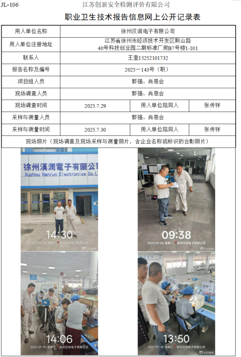 徐州安德利果蔬汁有限公司职业卫生检测项目公示