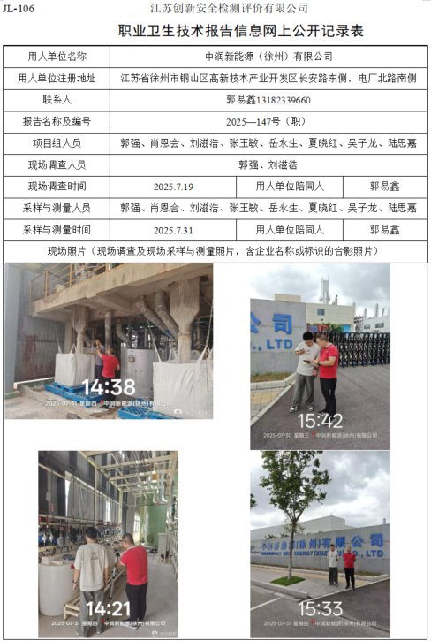 中润新能源(徐州)有限公司职业卫生检测项目公示