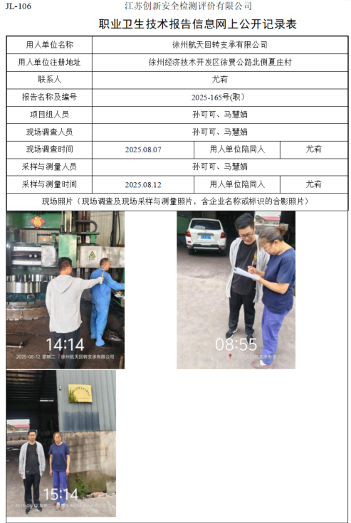 徐州航天回转支承有限公司职业卫生检测项目公示