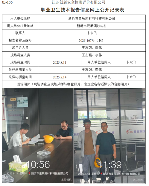 新沂市星辰新材料科技有限公司职业卫生检测项目公示