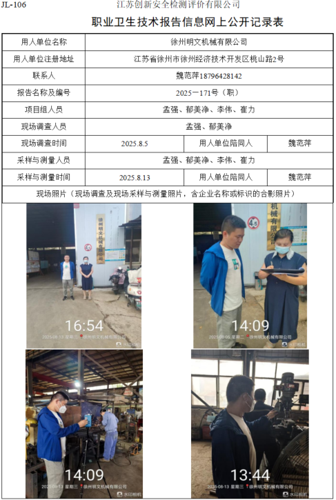 徐州明文机械有限公司职业卫生检测项目公示