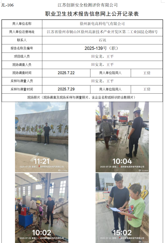 徐州新电高科电气有限公司职业卫生检测项目公示