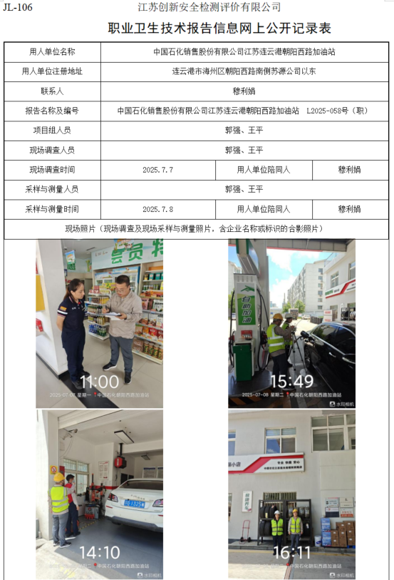 中国石化销售股份有限公司江苏连云港朝阳西路加油站职业卫生检测项目公示