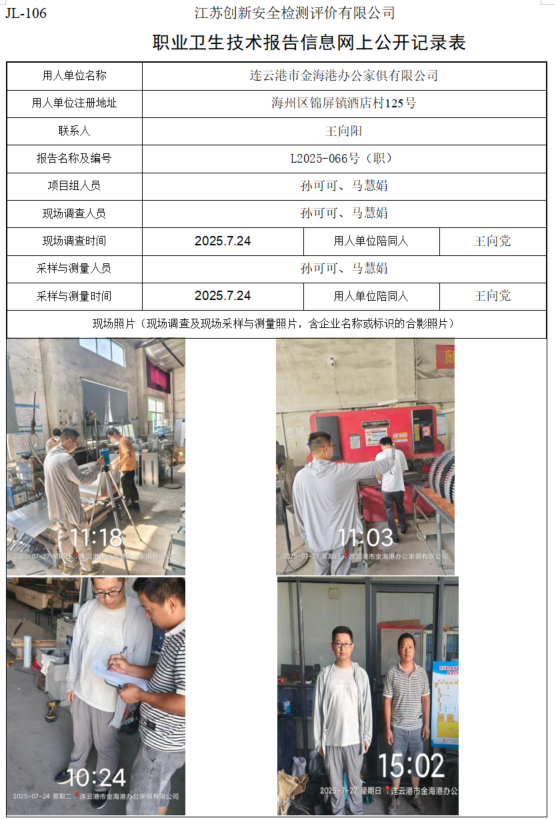 连云港市金海港办公家俱有限公司职业卫生检测项目公示