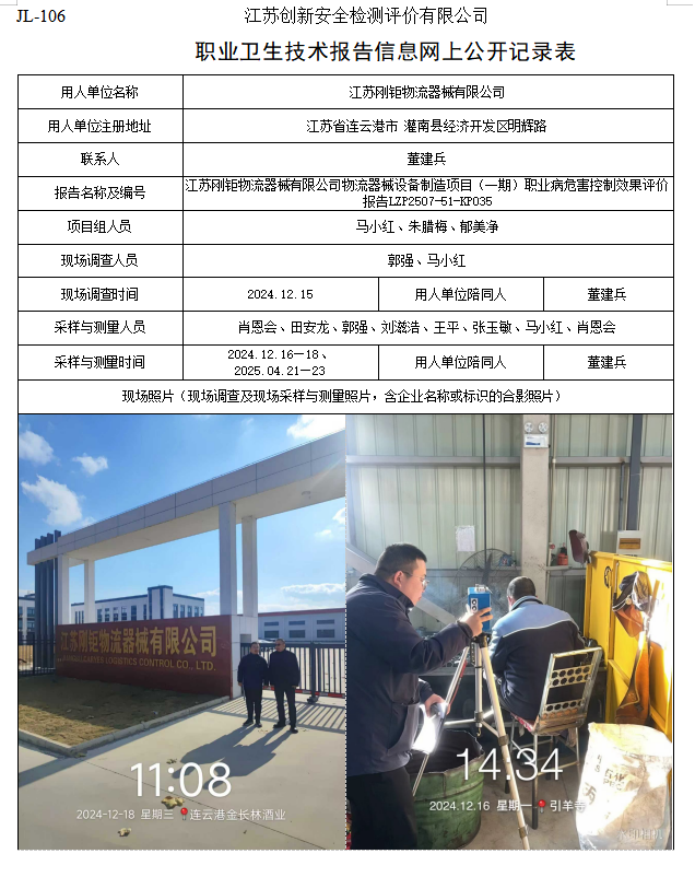 江苏刚钜物流器械有限公司物流器械设备制造项目(一期)职业病危害控制效果评价报告