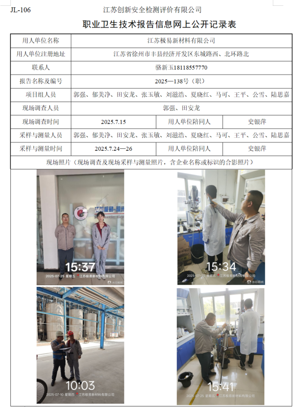 江苏极易新材料有限公司职业卫生检测项目公示