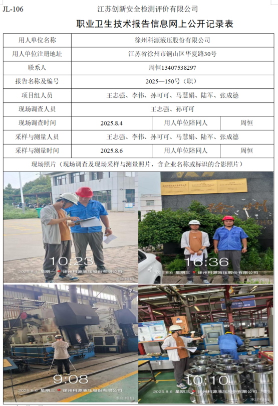 徐州科源液压股份有限公司职业卫生检测项目公示