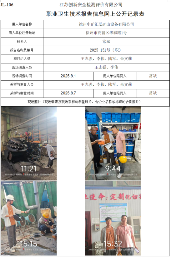 徐州中矿汇弘矿山设备有限公司职业卫生检测项目公示