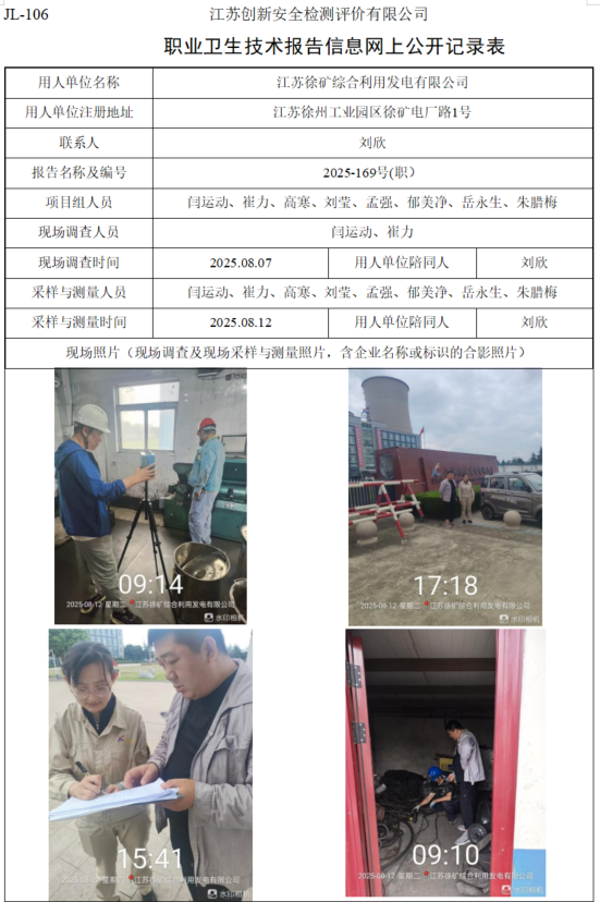 江苏徐矿综合利用发电有限公司职业卫生检测项目公示