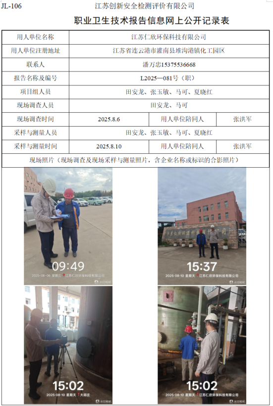 江苏仁欣环保科技有限公司职业卫生检测项目公示