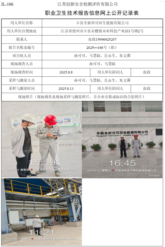 丰县全新世可再生能源有限公司职业卫生检测项目公示