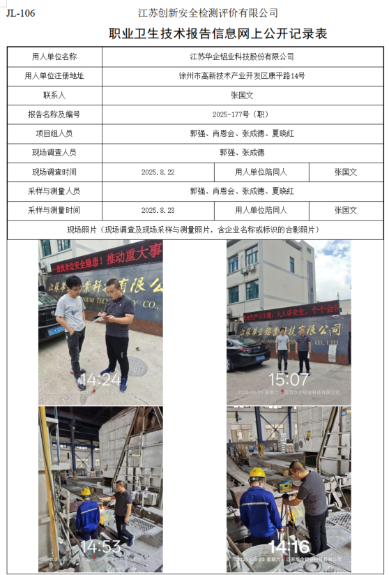 江苏华企铝业科技股份有限公司职业卫生检测项目公示