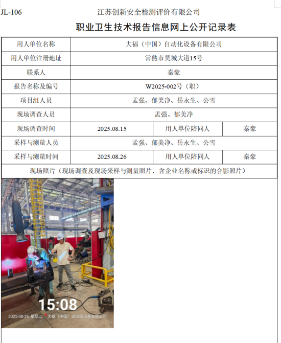 大福(中国)自动化设备有限公司职业卫生检测项目公示