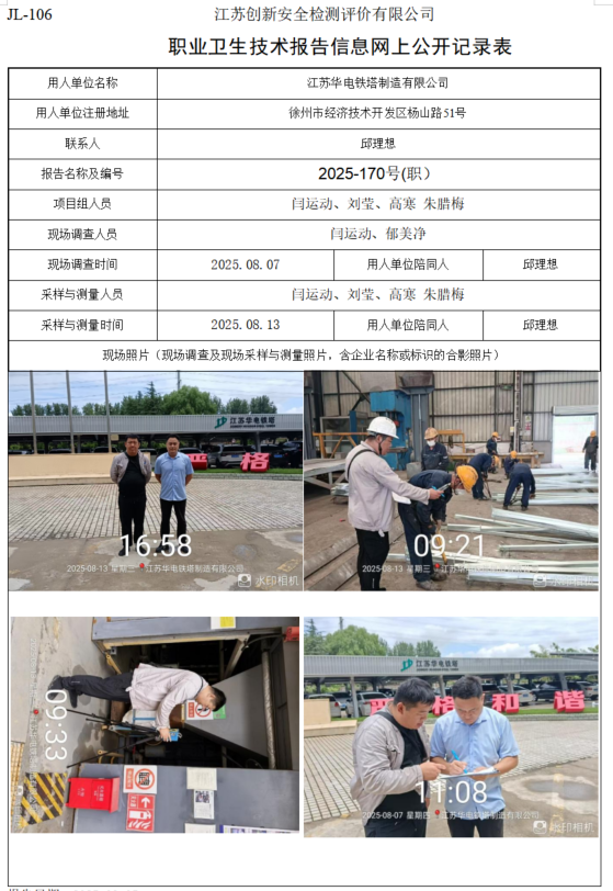 江苏华电铁塔制造有限公司职业卫生检测项目公示