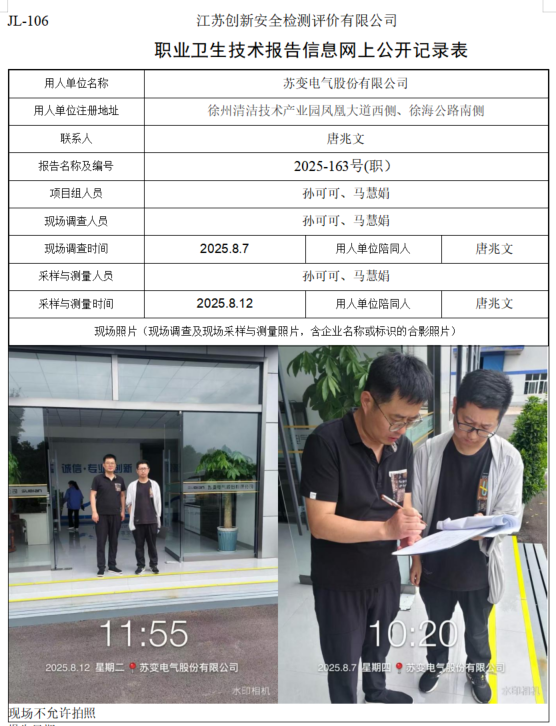 苏变电气股份有限公司职业卫生检测项目公示