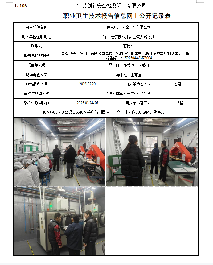 富港电子(徐州)有限公司高端手机供应链扩建项目职业病危害控制效果评价报告