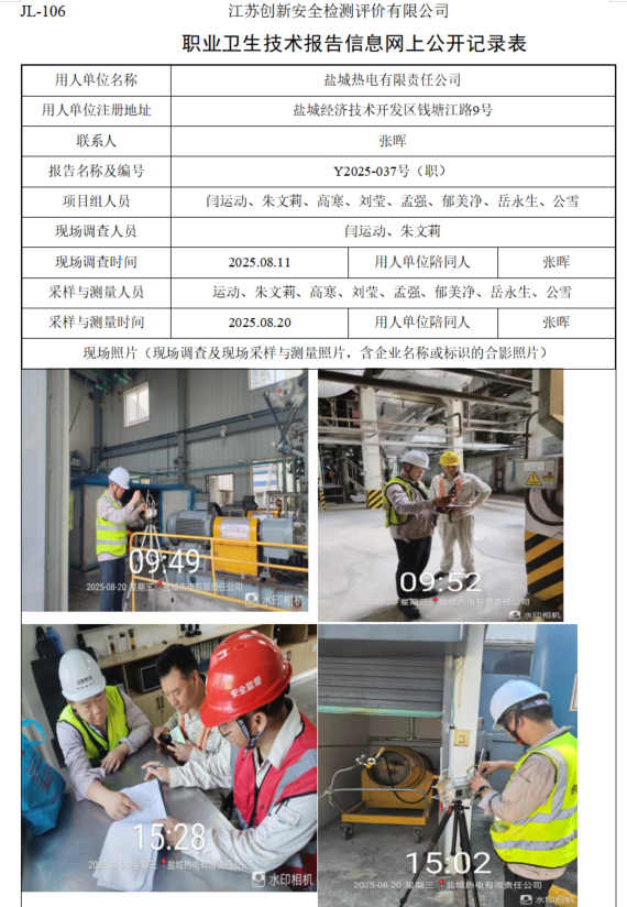 盐城热电有限责任公司职业卫生检测项目信息公开
