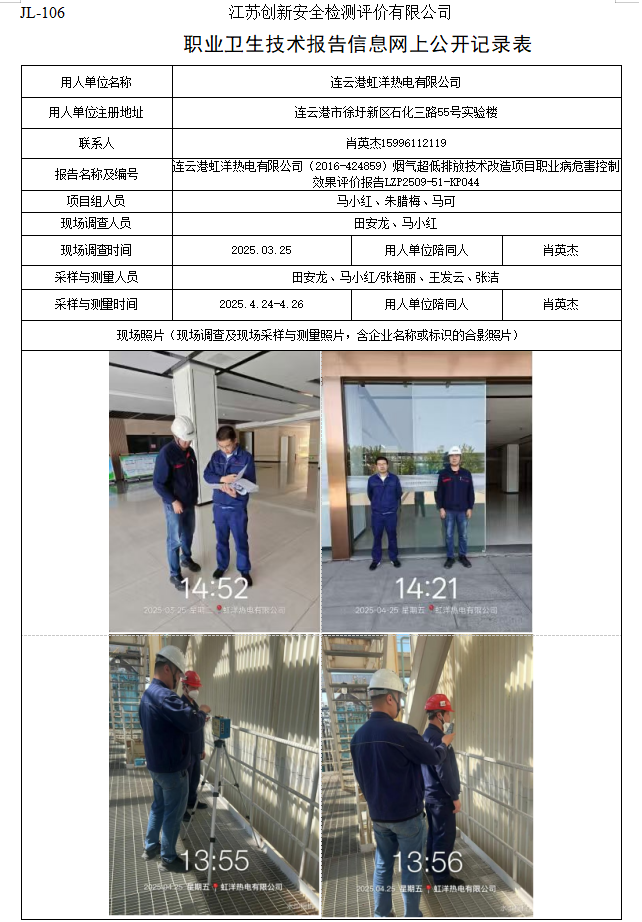 连云港虹洋热电有限公司开式循环冷却塔脱白改造工程职业病危害控制效果评价报告