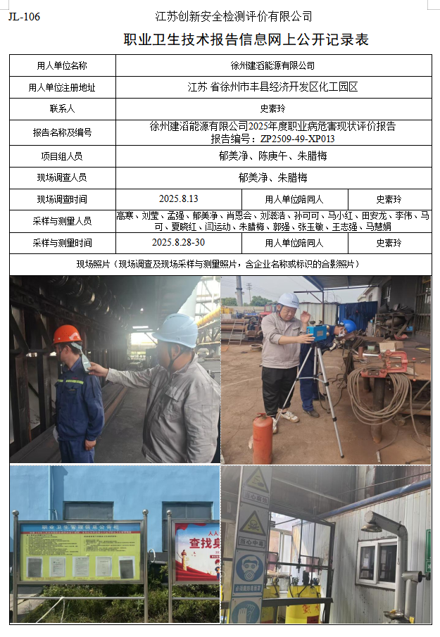徐州建滔能源有限公司2025年度职业病危害现状评价报告