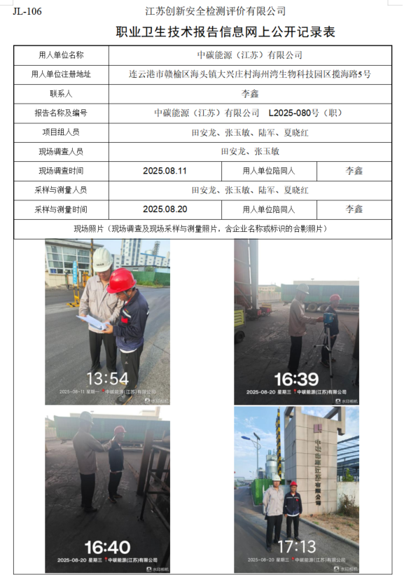 中碳能源(江苏)有限公司职业卫生检测项目公示