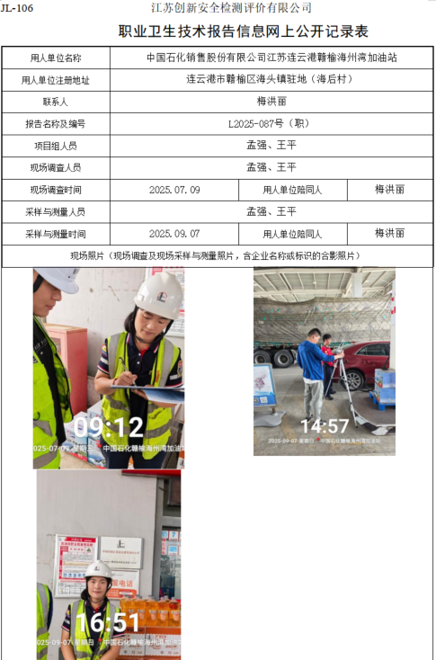 中国石化销售股份有限公司江苏连云港赣榆城南加油站职业卫生检测项目公示
