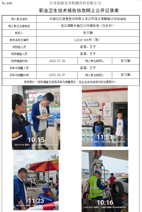 中国石化销售股份有限公司江苏连云港赣榆沙河加油站职业卫生检测项目公示