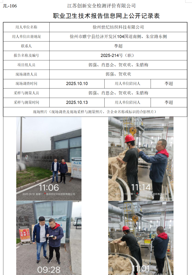 徐州世纪纺织科技有限公司职业卫生检测项目公示