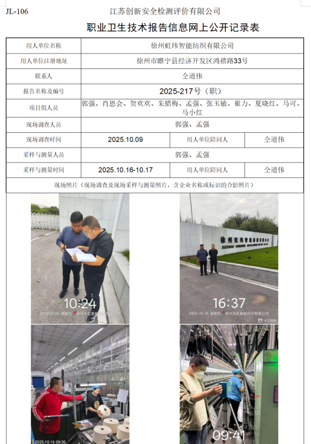 徐州虹纬智能纺织有限公司职业卫生检测项目公示