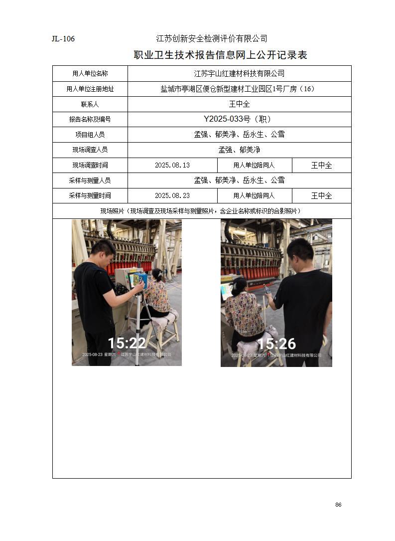 江苏宇山红建材科技有限公司职业卫生检测公示